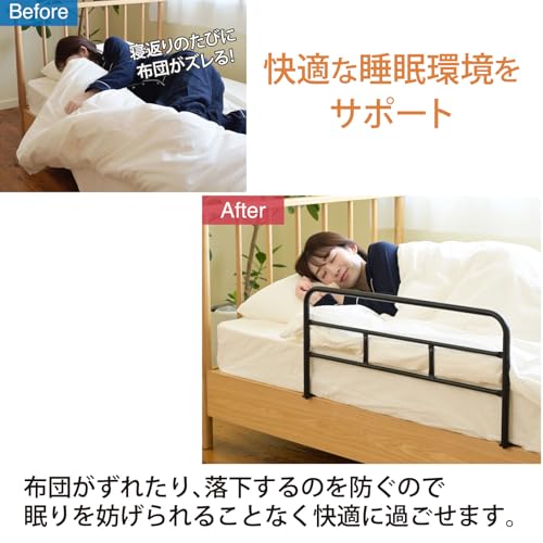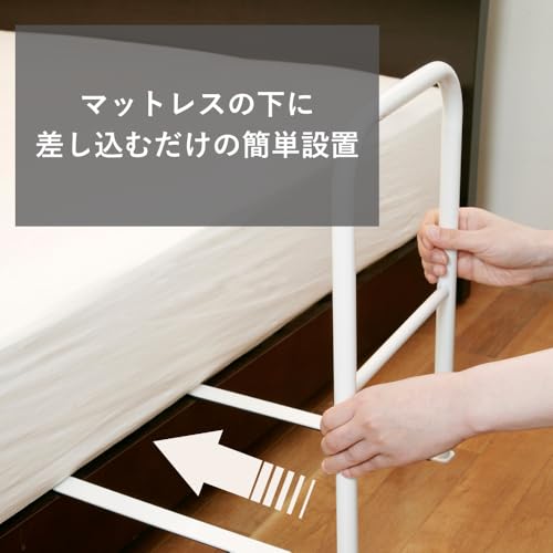 高さ約51cmで、マットレスや布団のずり落ちを防止します。シンプルなスチール製で日常使いに十分な耐久性があります。