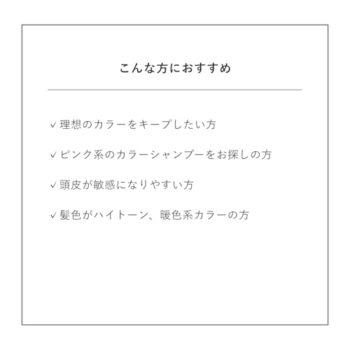 - ② 目的優先:日常の仕上がり(ふんわり/まとまり)、地肌リセット、カラーの色持ちなど優先目的で選ぶ。